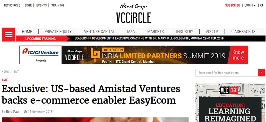 DIA Capital Advisors acted as an exclusive financial advisor to EasyEcom in its Bridge funding from US-based Amistad Ventures