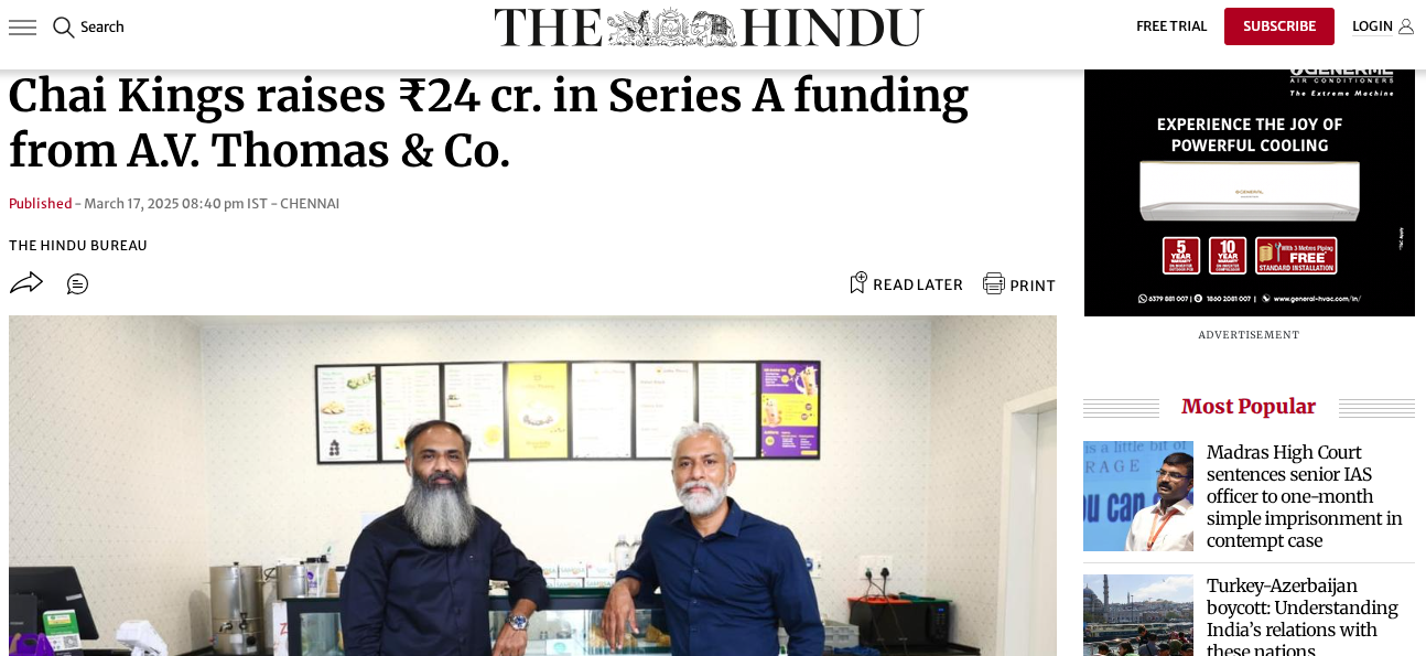 DIA Capital Advisors acted as an exclusive financial advisor to A.V. Thomas & Co. in its equity infusion in Chai Kings in Series A funding