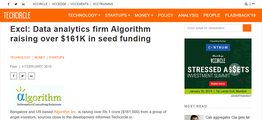 DIA Capital Advisors is advising Life Sciences Data analytics firm Algorithm Inc. on raising over $161K in seed funding