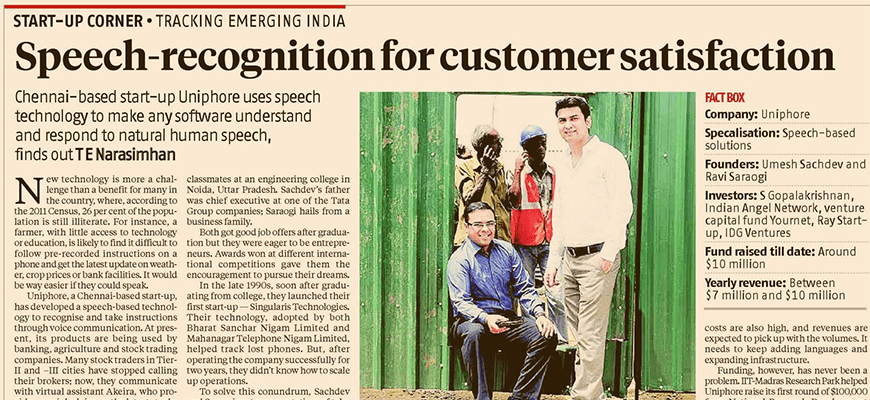 Nishant Navin, Founder and Managing Partner of DIA Capital Advisors, was quoted in Business Standard's START-UP CORNER providing an Expert Take on speech recognition solutions company Uniphore