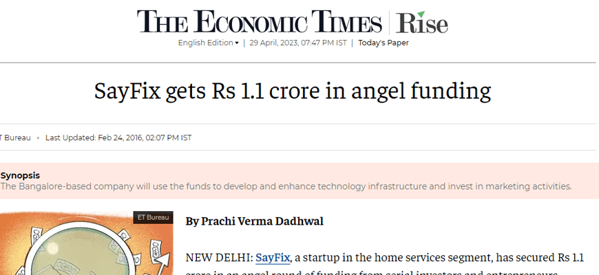 DIA Capital Advisors acted as an exclusive financial advisor to SayFix in their angel round of equity funding led by a group of serial investors and entrepreneurs